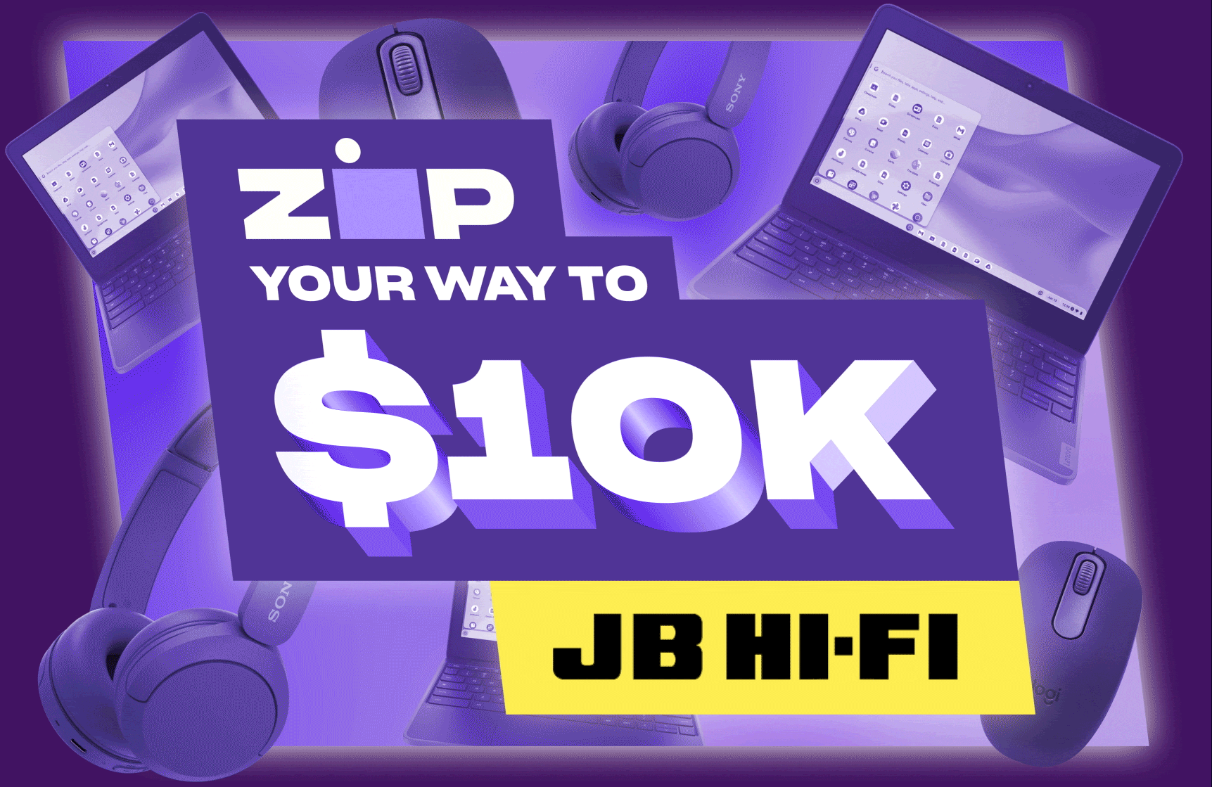 Just spend $50+ with Zip at JB Hi-Fi and you're in the draw to win $10K in JB Hi-Fi gift cards